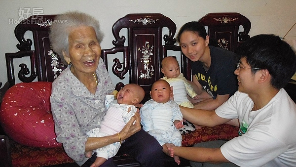 育下三胞胎,收支變不平衡之外,照顧上連祖奶奶都得加入行列。民代建議中市政府重視生育津貼,勿讓市民變幽靈人口。(記者陳榮昌攝)