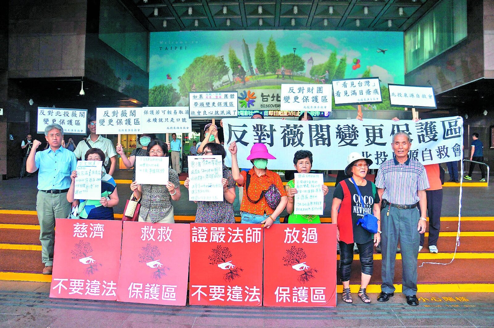 北市都市計畫委員會今天討論「全市性保護區處理原則」,擔心市內保護區是否將解禁,多個環保團體昨天到北市府抗議,呼籲市府發展局應刪除「北市都市計畫保護區之檢討及變更原則」第三條第3、4點。