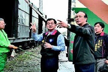 蘇花公路中斷,立委王廷升昨天到花蓮火車站關心「鐵路運輸郵件」裝卸作業試作,過程相當順利。(擷取自聯合新聞網)