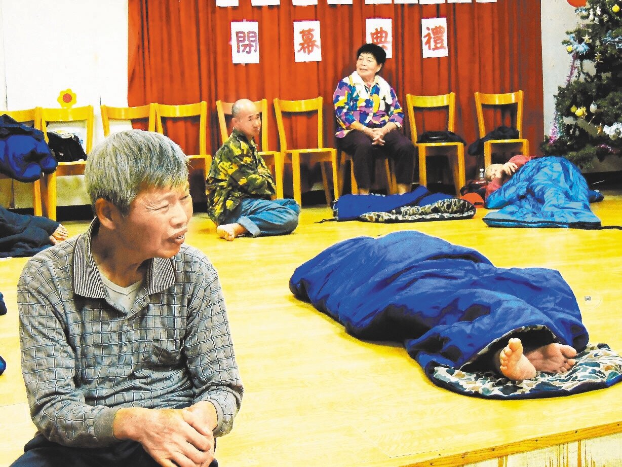 警消強制撤離三峽有木里部分居民至有木國小避難,區公所準備40個睡袋、10箱泡麵、盥洗用品等,讓里民在風雨中依然飽食暖衣。 記者邱榆蕙/攝影