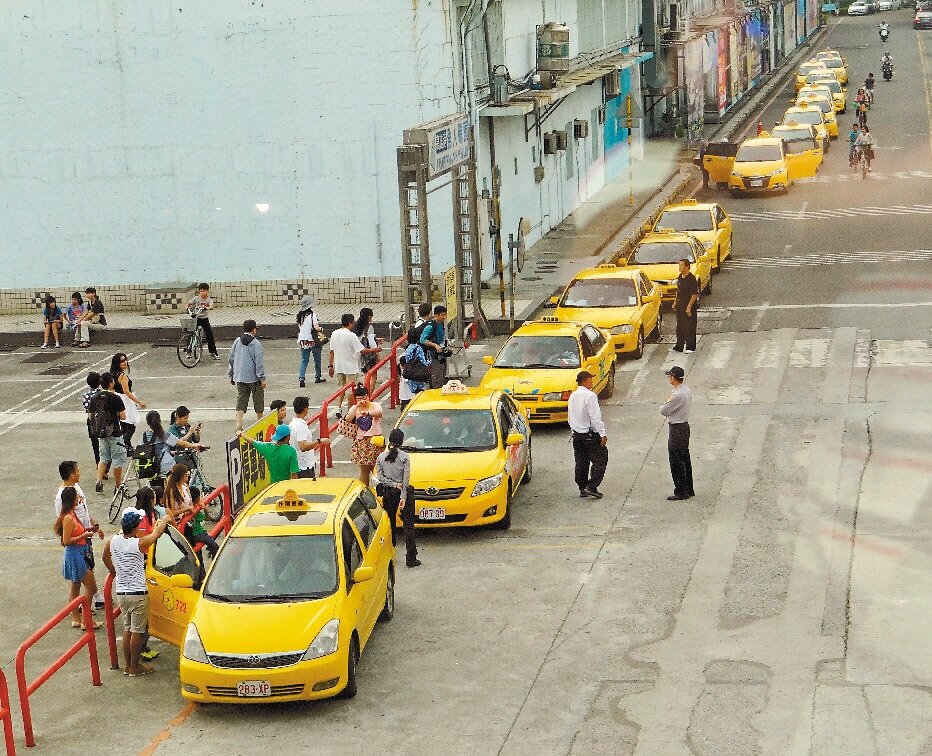 高雄港香蕉、漁人碼頭的排班計程車,最近傳出對郵輪旅客亂開價。(記者謝龍田/攝影)