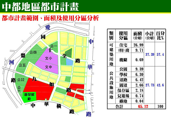 謝福來說,市縣合併前累積公辦開發期數共123期、面積4775公頃,合併後,公辦重劃24處361公頃、區段徵收12處442公頃,合計約803公頃,預計取得公設面積約330公頃,並以平均地權基金支援市政建設92項工程約51億元,藉由重劃及區段徵收的開發,有效釋放都市空間、活絡產業經濟。