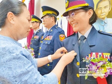 接任布袋分局長的蕭慧珠是嘉縣首位女性分局長,縣長張花冠授階時特別表達讚許與鼓勵。(截取自中時電子報)