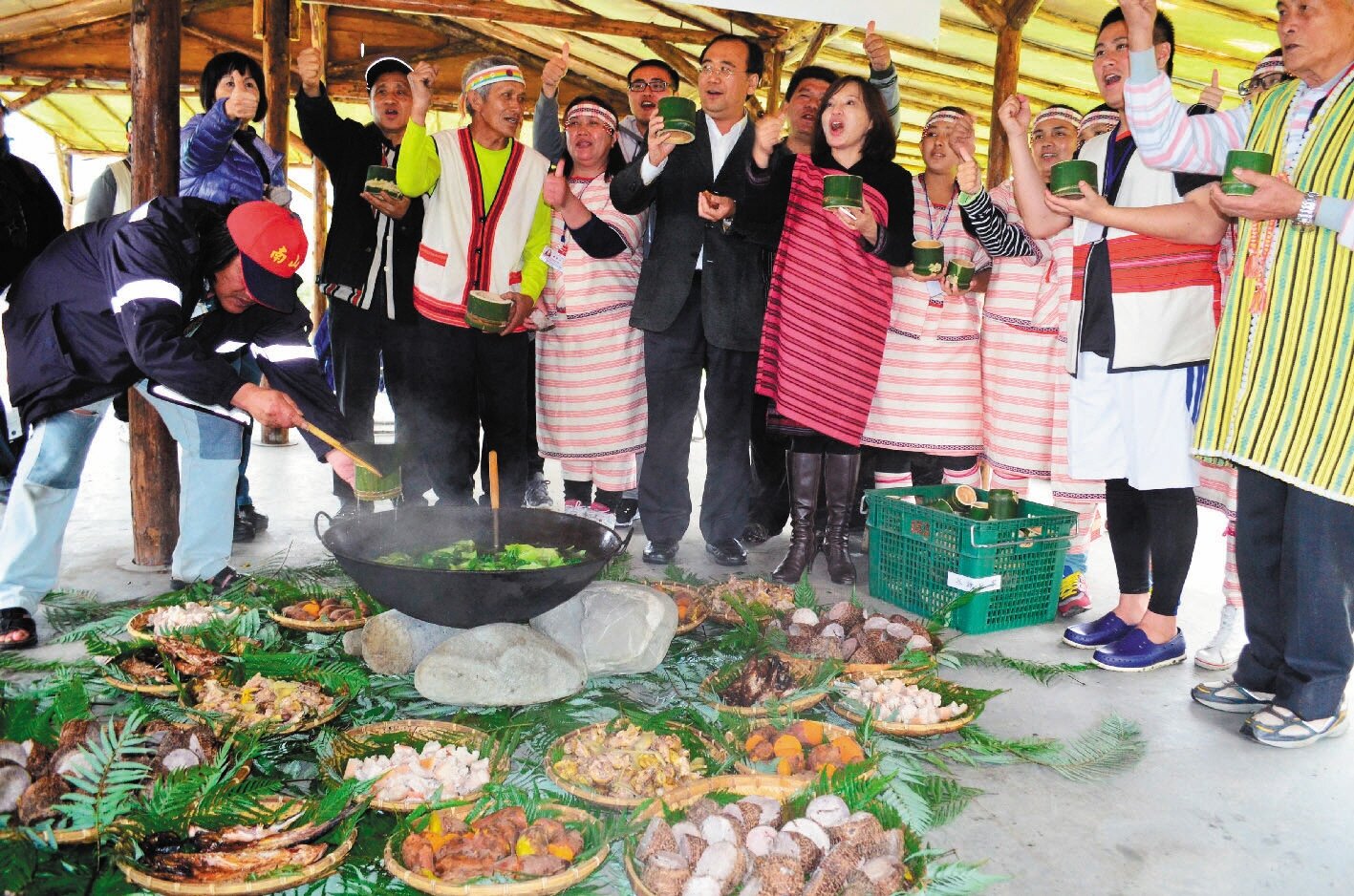 耆老們示範傳統技術,也準備豐富的祭品向祖靈祈福。(記者廖雅欣/攝影)