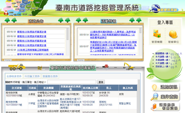 因此,工務局經過檢討,推出新建房屋電子化整合進階版,擴充道路挖掘系統功能並整合為單一窗口,建商於取得建照後,可至台南市道路挖掘管理系統首頁『新建房屋聯合挖掘』選項下,登載原臺南市新建房屋管線聯合挖掘申請書所示相關欄資料,管線單位可再續補充未來有無配合辦理統一銑鋪意願。