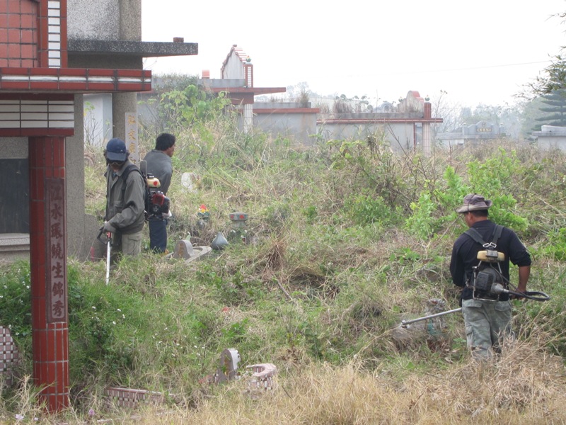 為便利民眾掃墓,大溪鎮公所編列預算上網招標,為全鎮六個公墓和一座納骨塔進行除草,將於三月二十八日就會完成清除。(記者陳寶印/攝)