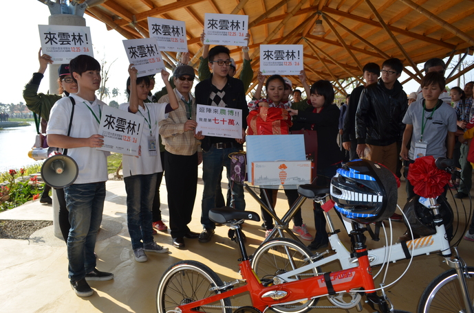 雲林農業博覽會23日吸引4萬多人入園,並於下午3點20多分入園突破70萬人次的幸運兒產生,是一位來自台中市神岡區的民眾朱律錚,獲得兩部摺疊自行車、安全帽和雲林好禮一大箱,由縣府秘書長許義豐代為頒贈祝賀,農博也將持續向入園參觀人潮80萬人次邁進。