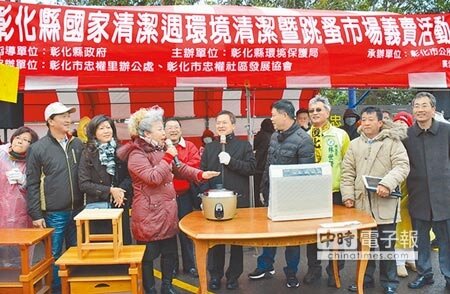除舊布新迎新春!彰化縣環保局24日舉辦「國家清潔週環境清潔暨跳蚤市場義賣活動」,40多個社區和上百多個志工一起參與,一起捲起袖子清掃街道,跳蚤市場義賣熱烈,資源物品再利用,所得也捐給弱勢學童獎助學金,發揮彰化人愛心。