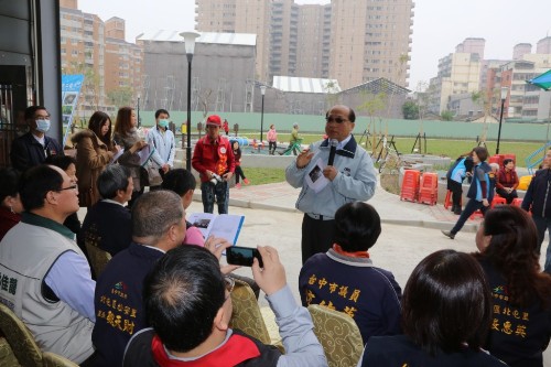 市府建設局長吳世瑋表示,一德新村簡易綠美化工程自去年9月動工,面積0.95公頃,工程經費約950萬元,圍繞著歷史古蹟一德洋樓規劃大面積草坪,並設置活動遊戲區、運動設施等,可作為遊戲、散步或集會的場所。
