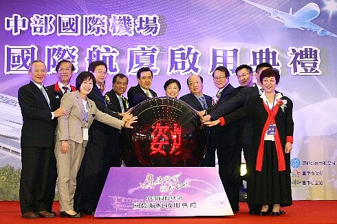 在台中市長胡志強及地方民代大力爭取、總統馬英九支持下,耗資38.9億元的「中部國際機場國際航廈」10日啟用,馬總統親臨剪綵並讚胡市長高瞻遠矚、作為積極,具有國際觀,六年內讓機場運量成長二百倍,讓中部發展升級!馬總統也說中央會加速機場後續建設,「中央地方一條心,台中建設有信心!」