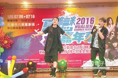 花蓮縣政府29日舉行夏戀嘉年華宣傳記者會,邀請KTV爆紅歌曲「癡情玫瑰花」原唱的團體Under Lover以及人氣偶像團體Gentleman紳士男孩勁歌熱舞炒熱全場氣氛,共同為花蓮暑期系列活動拚人氣。