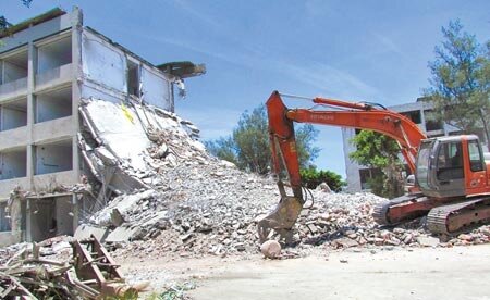 前台中港務局宿舍區共有11棟4層樓建物,目前正雇工進行拆除,將活化再利用。(記者陳世宗/攝影)