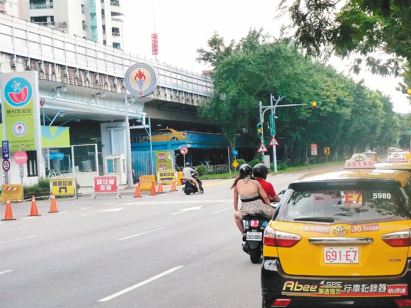 只不過3座加油站中,除八德路路口處外,鄰近農安街與大安森林公園的2處,高架橋下加油站出入口全鄰接快車道,汽車進出站加油沒有問題,但機車加油就要面臨因跨越快車道,可能發生違規甚至發生事故等問題。
