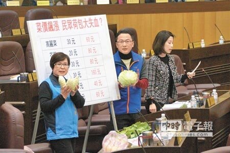 風雨未到菜先漲,風雨離開菜更貴!市議員萬美玲諷刺菜價節節攀升,劉茂群、楊朝偉、舒翠玲等議員還說漲了足足6倍,議員要求穩定菜價;謝彰文議員說,依據農業局規畫「購貯計畫」,將季節性生產過剩的蔬果,低價購入冰存,待適當時機再釋出,希望能達到平準物價,農業局長謝長勝表示,規畫9月上路。