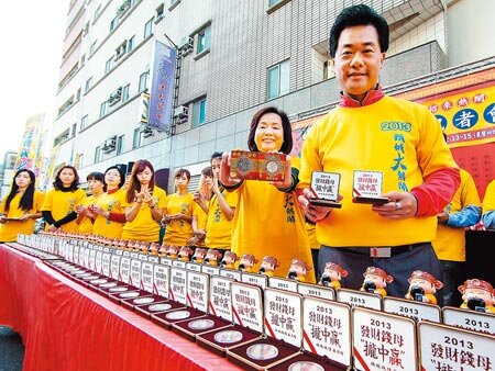 蔡文益說,頭城城隍廟有兩百多年歷史,也是鎮上的信仰中心。過去大熱鬧時有發送發財美金讓民眾作為錢母,今年與往年不同,發送的是龍銀,計有八千枚,龍銀可放在錢櫃或床下中間,還有「攏中贏」的含意,讓鄉親一整年順順利利、大放異彩。