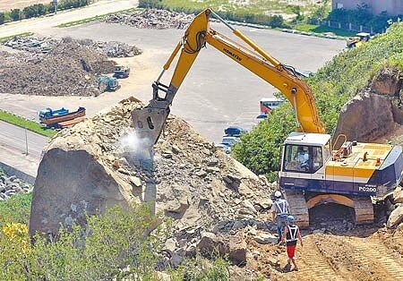 自從猴抱石清除之後,昨天市府工務局也轉往清除邊坡上其餘碎石,一天內就全部完成,今開始替邊坡鋪上帆布避免雨水沖刷,並繼續施作其他水土保持措施,預計3天內能完成該有進度。