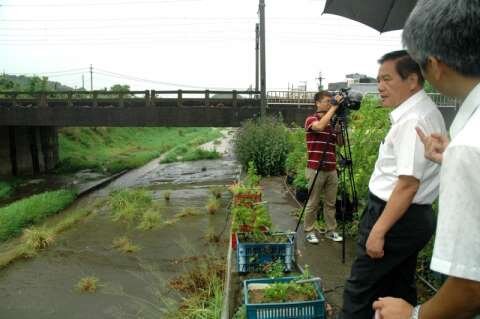 許明財隨後前往溪州橋改建工程工地現場,視察工程單位防災準備工作,叮嚀人員機具撤離河床,建材原料亦應搬往高處,以最高的防範應對,保證已施作基礎工程通過颱風檢驗。