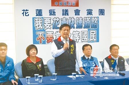 國民黨多位花蓮縣議員包括邱永双、何禮臺、魏嘉賢、游淑貞、葉鯤璟、徐雪玉、林宗昆、萬榮財、余夏夫、林秋美及花蓮縣黨部主委張逸華等人,昨日振臂疾呼「我要花東快速道路,不要當次等國民!」除聲援徐榛蔚、力挺特別條例過關,也呼籲外界正視花東人民的交通需求。