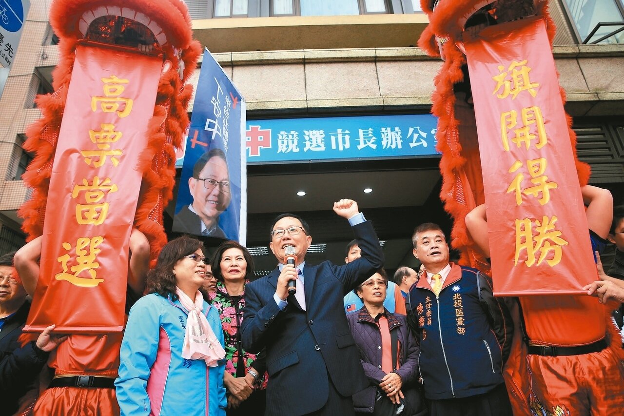 前立委丁守中(中)成立台北市長競選辦公室,他說他的爆發力足以帶動議員選情。 (記者林伯東/攝影)