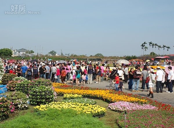 新社花海假日賞花人潮再創新高,週六日兩天共湧入43萬人次的賞花客。(記者黃玉鼎攝)