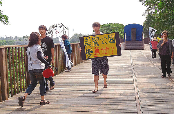 愛鄉護土自救會立刻回批,民政處發布的民調結果只是在為爭取興建尋找正當性,自救會「建議」縣府應該也要問問民眾「贊不贊成在國家古蹟旁蓋火葬場」?「贊不贊成把公園變成火葬場」?才算真正了解民意。