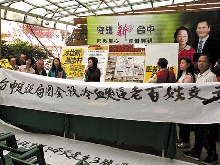 「市府官員講清楚」數十名主三號道路沿線地主自救會在翁美春帶領下,拉起白布條向市府抗議。翁美春表示,主三號為三社東路的銜接道路,三社東路已停工,為何還要開闢此路?且主三號未依既定道路拓寬,而是自農田中央開過,試問在農田中央開闢十五米寬的道路,給誰用?