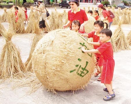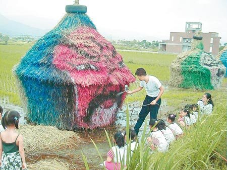 宜蘭冬山鄉珍珠社區舉辦稻草藝術節,舉辦推稻草球比賽。
