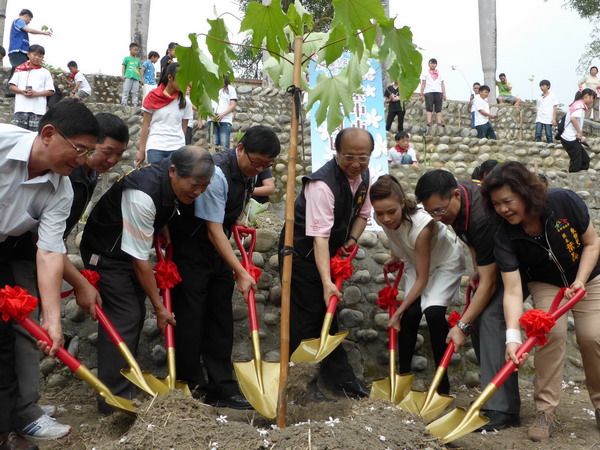 市長胡志強與地方各界人士在客家多功能文化園區,種植油桐樹,並期許扎根、成長、茁壯。(記者黃玉鼎/攝影)