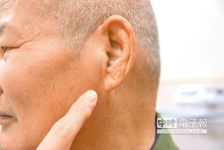 葉姓老翁耳垂出現對角皺紋,也稱為冠心溝,醫師提醒,這代表患有心血管疾病風險較高。(莊旻靜攝)
