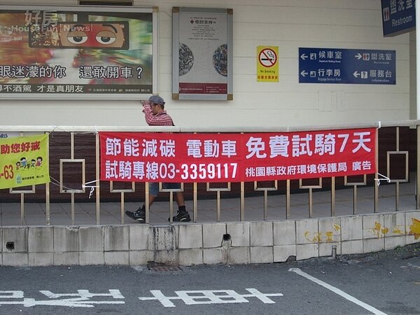 桃園縣政府環境保護局推廣電動機車減碳方案,11月2日在桃園火車站前及統領百貨前,同步辦理電動機車試騎宣導活動,試騎可長達一週,業者也配合推出租車每天35元,租滿3年贈原車活動,民眾可前往登記試騎,滿意再租用。