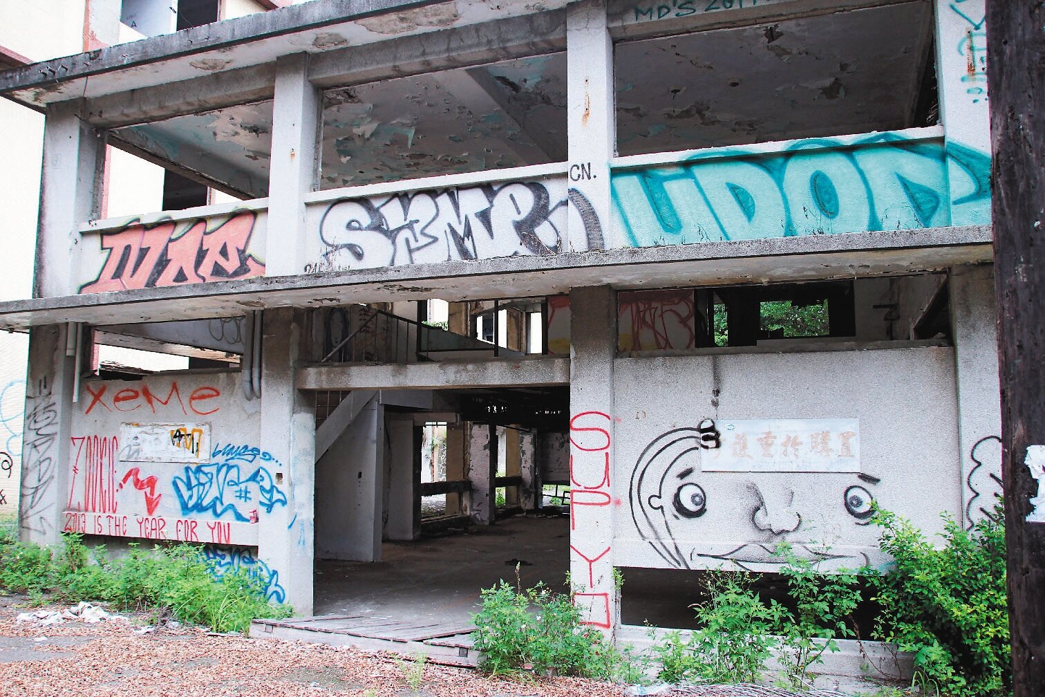 南港瓶蓋工廠曾開放藝術家進駐,牆上留下大量塗鴉。(記者廖珮妤/攝影)