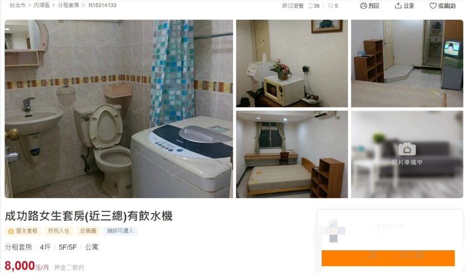 8千台幣在台灣能找到怎樣的房子?即使在房價最貴的台北,例如南港、內湖仍有機會入住中古公寓的雅、套房,空間也有5~8坪,即便是中山、中正區也還找的到5~8坪左右的物件,有些鄰近捷運有交通機能,附近還有公園能散步,甚至附帶冰箱、冷氣、電視、衣櫃等家具,月租還8千台幣有找,對比香港劏房連四肢可能都難以伸展,居住環境確實好很多。