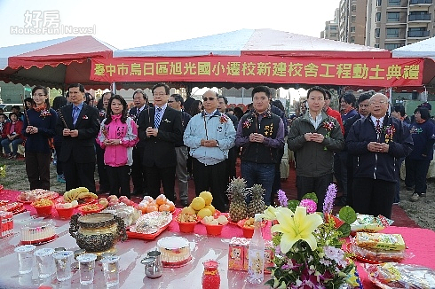 台中市烏日區旭光國民小學16日舉辦「遷校校舍新建工程動土奠基典禮」,市長胡志強與立法委員紀國棟、顏寬恆、市議員吳瓊華、陳世凱、林汝洲、教育局長吳榕峯、烏日區長陳芳隆、當地里長等多位來賓出席動土典禮,胡市長期許旭光國小遷校後能為學校注入活水,給孩子更優質的學習環境,讓學校未來發展得更好。