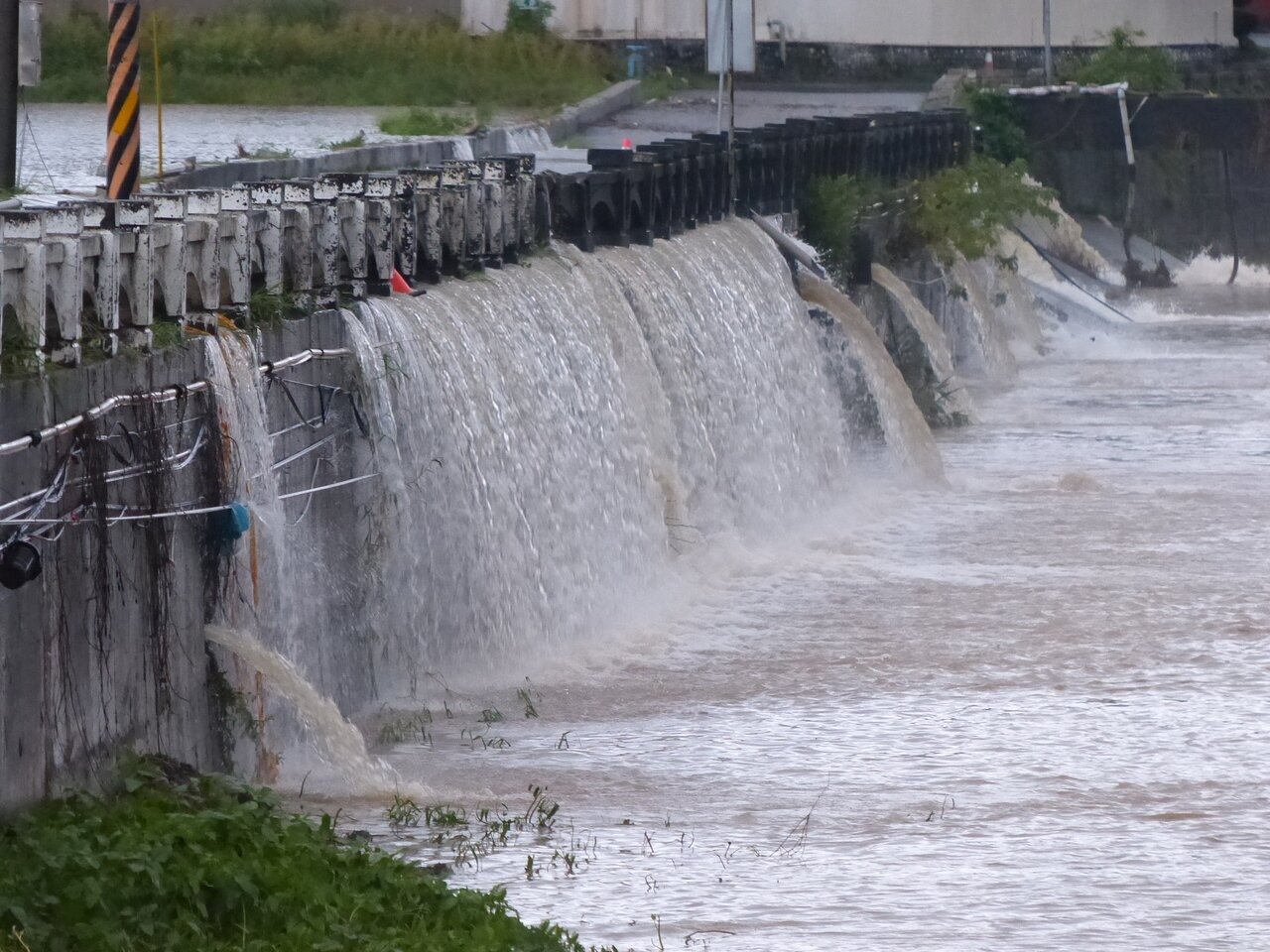 彰化市大埔截水溝是彰化市治山防洪最重要的排水,在一夜豪大雨,奔騰水勢快到溢出,讓附近民眾十分緊張,還好撐下去了。不過,農田的水流仍然注入截水溝,分不清護岸道路與農田,警方將南側護岸道路封閉,避免危險。