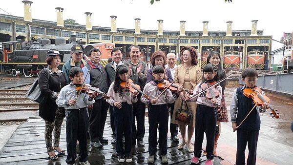 拓展文教基金會創辦人翁金珠28日與5位小朋友在彰化扇形車庫拉起小提琴為看火車跳舞活動暖身,彰化扇形車庫曾一度面臨拆除的命運,翁金珠在縣長任內完成修復,2005年正式開放給民眾參觀,目前為全台僅存活動式扇形車庫。彰化機務段副段長陳振華表示,彰化扇形車庫至今仍然維持各式火車頭的維修工作,同時保存有全台最古老且尚能運作的 CK-101車頭。