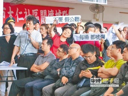 住戶不滿爆發多波推擠長榮新城住戶全程高舉「不要假公聽、給我真聽證、每場都唬爛」標語,認為鐵工局只為做簡報無意溝通,有住戶表示,0206地震倒了一棟大樓,地下軌施做若遇上地震,會否倒塌?萬一房屋龜裂傾斜,誰賠償?長榮新城主委朱德隆強調,大家都支持鐵路地下化,前提是政府承諾住戶住得安全。