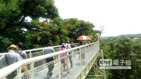 梁信雄表示,以輕型鋼架為結構的天空步道,柵欄式線條造型,從八卦山大佛一路串連到彰化生活美學館,步道全長1,005公尺,是全台最長的天空步道,高度達16公尺,沿途視野遼闊,還能漫遊在富含大量芬多精的森林中,體驗豐富的自然生態之美。