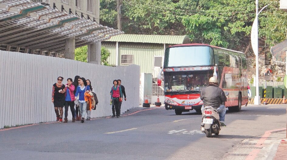 往來西子灣的木步道最近整修,陸客沿著馬路走,與車爭道,險象環生。(記者謝龍田/攝影)