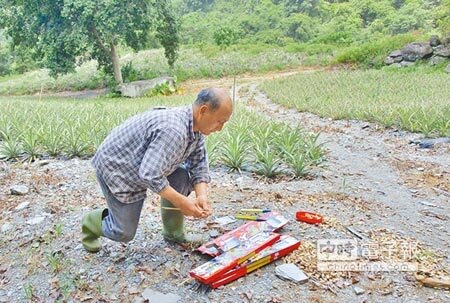 更無奈是晚上還有山豬、山羌到田裡逛大街,山羌保育類誤殺會有刑責,因此只能用沖天炮驅趕,效率低落。吉呀努說,受限於法令規定許多野生動物要保育,山區猴子、山羌越來越多,他鳳梨要2年才能收成,現在只能日夜守在田裡努力驅趕,以避免血本無歸。