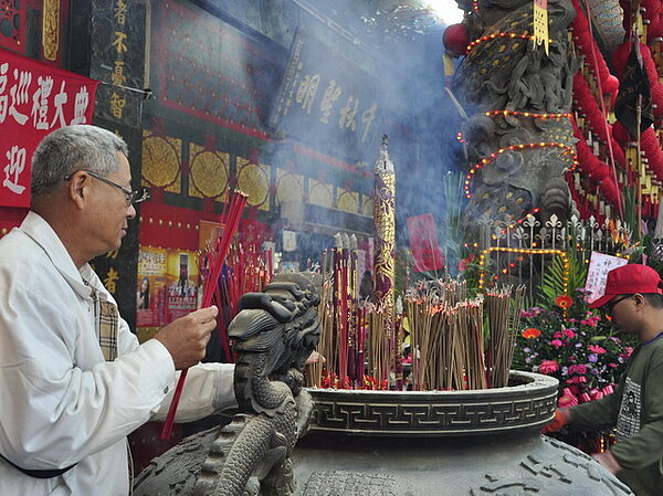 普天宮董事長鄭逸榛表示,為闡揚「關聖帝君」仁、義、禮、智、信偉大精神,建立安定祥和社會,台灣106宮廟特別邀請明朝雕塑製供,至今已有六百年歷史之山西解州關帝聖駕蒞台遶境供民眾祈福,聖尊所到之處有許多民眾持香參拜祈福,場面熱鬧吉慶。