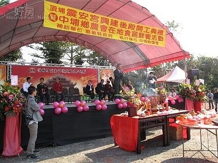 嘉義縣中埔鄉頂埔村震安宮日前為其後殿興建工程舉辦開工典禮,除邀請地方首長、政要、民意代表出席參加,並與中埔鄉農會配合舉行中埔鄉在地食蔬鮮饗活動,總計有中埔鄉有20班家政班參加在地食蔬烹飪比賽,期許以宗教活動推展在地農特產業的起步,希望未來透過宗教慶典活動,提供信徒香客多元的體驗,創造雙贏局面,廟方也準備了甜湯圓及限量的精美祈福小禮物贈送給參與的信眾。
