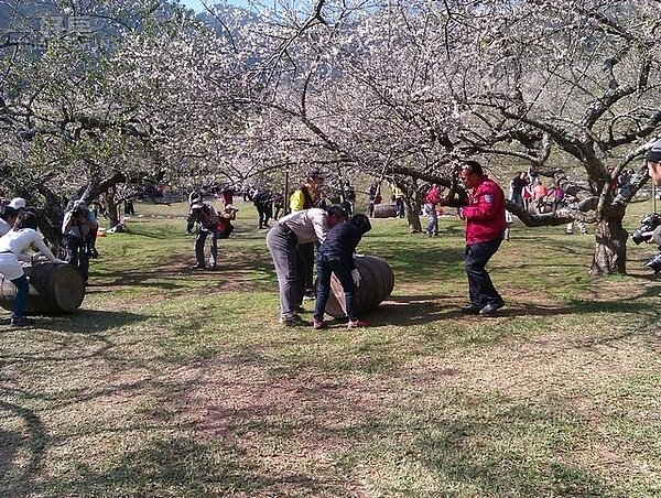 南投縣信義鄉農會5日在牛稠坑柳家梅園舉辦年度盛事,信義鄉踏雪尋梅-甜蜜負擔夫妻揹負競賽暨同心伉儷滾橡木桶競賽的趣味活動,吸收來自全國各地的民眾參與,還有賞梅的遊客,讓整座柳家梅園熱鬧滾滾,歡樂聲不斷。