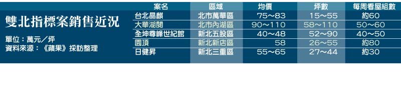 台北市內湖區上周末看屋台商也增,「大華湖閱」銷售人員表示,因近期中國嚴厲打房,加上H7N9禽流感造成台商恐慌,不少台商寧可回流資金,過去每周成交7~9戶,近1周成交微增到10戶。