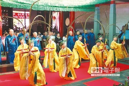 板橋區大觀書社自民國52年開始舉辦祭孔典禮,今年突破場地限制,呈現僅8人表演的改版佾舞。