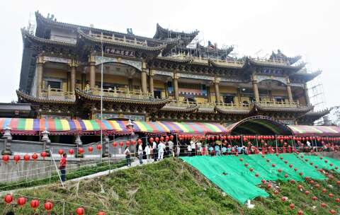 斥資1億7千多萬元,歷經17年的建設,位於三灣鄉北埔村姆宇山的五寶慈湖禪寺,5日舉行新廟入火安座大典,縣長劉政鴻與住持釋輝靈法師在上午吉時開廟門,宣告正式開山為廣大的眾生服務。,也一起祈求瑶池佛母等眾神庇佑信眾吉祥、平安、健康、快樂。