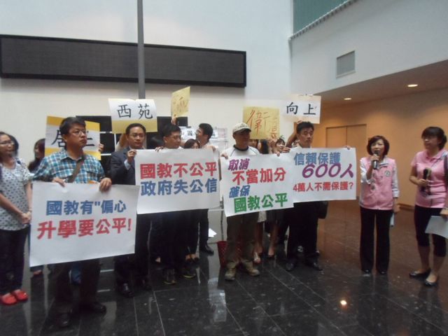 市議會教育文化委員會召集人李中及議員洪嘉鴻則表示,國中會考考試在即,該小組將於20日要求教育局對此問題做專案報告,保障考生的權益。 教育局科長劉朝芳表示,教育局將慬慎處理此案,19日下午4 時在陽明大樓將邀集學生家長共同研討如何障考生的權益。學生家長並遞抗議書由劉朝芳代表接受。