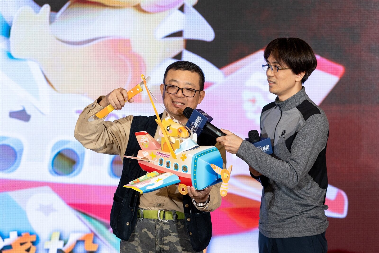 2026桃園馬年創意小提燈「馬上發」,由從事紙藝創作近40年、紙雕小提燈原創人洪新富老師為桃園燈會量身打造,今年小提燈命名為「馬上發」,設計呼應航空城主題,採用飛機造型,由生肖「馬吉」擔任機長,象徵穩健前行。提把設計融入銅錢元素,螺旋槳則寓意「前轉(錢賺)」。提燈外觀點綴珍珠海岸意象與桃花圖樣,飛機擋風玻璃處更貼心設置存錢孔,讓民眾在燈會後可作為存錢筒使用,兼具環保與實用。