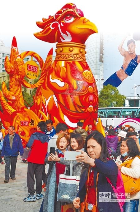 台北燈節日前熱鬧開幕,11日元宵節當天將舉辦「西城嘉年華大遊行」,大型花車陸續登場,除了林默娘、刺青客花車已展示在中華路,生力軍「日珥雞」6日正式在西門町街頭亮相(左圖,劉宗龍攝)。台北市長柯文哲表示,今年台北燈節首次移師西區,西門町是老舊社區但有許多青少年聚集,代表著新舊之間相互融合。