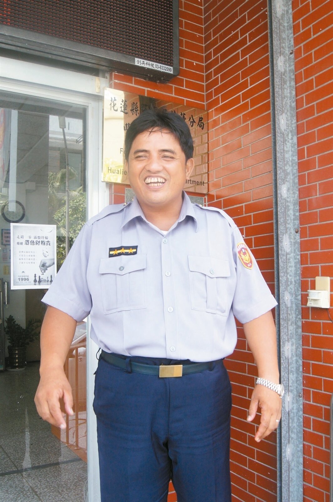 住花蓮秀林鄉的劉熹璟,從警廿多年,閒暇時愛釣魚。由於他外型粗獷,膚色黝黑,轄區可能滋事者看到他就怕,同仁幫他取「山豬」的外號,沒想到粗獷鐵漢「山豬」也有暖男柔情一面。