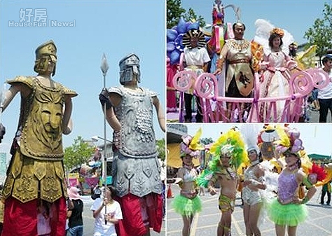 前導戰馬車是利用立體工法來製作馬頭,兩側加上雲騰、LED燈裝飾,讓人有飛躍奔騰的感覺,將三輪車賦予新生命之創意造型。主花車長7米、寬3.2米、高達4.9米,獨角獸在西方神話故事裡,被譽為神獸,造型運用立體雕塑,不以寫實具像「馬」的形體來呈現,而以塊面藝術性塑型呈現出「力」與「美」,姿態賦予騰空飛躍、神獸下凡之姿,為凸顯主花車之主角神獸非凡氣度,採用螢光色系混搭,並以金銀色顯現出貴氣,並運用金蔥粉、金線鈎勒雲圖,凌駕祥雲之上呈現出精緻視覺藝術的表現。